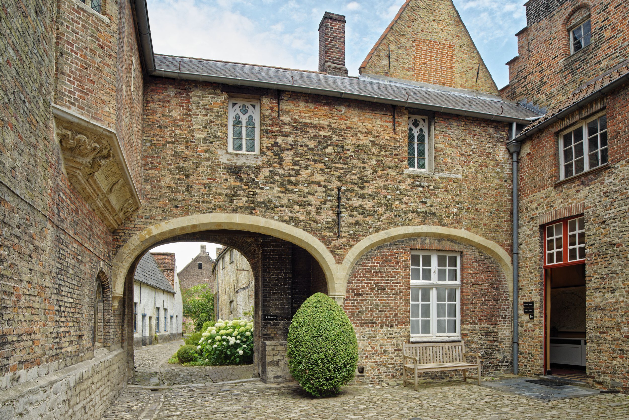 De gids wacht u op aan de ingang van het Adornesdomein, Peperstraat 3, Brugge.